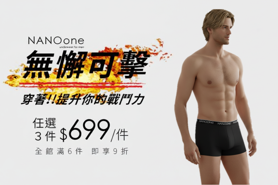 負離子男內褲 滿3件打47折,平均每件只要699,NANOone 負離子機能衣物